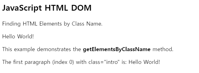 <p class="intro">This example demonstrates the <b>getElementsByClassName</b> method.</p>