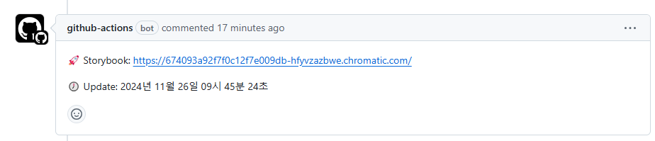 추가로 PR 코멘트로 바로 스토리북 배포 링크를 확인할 수 있도록 액션을 추가해주었다.