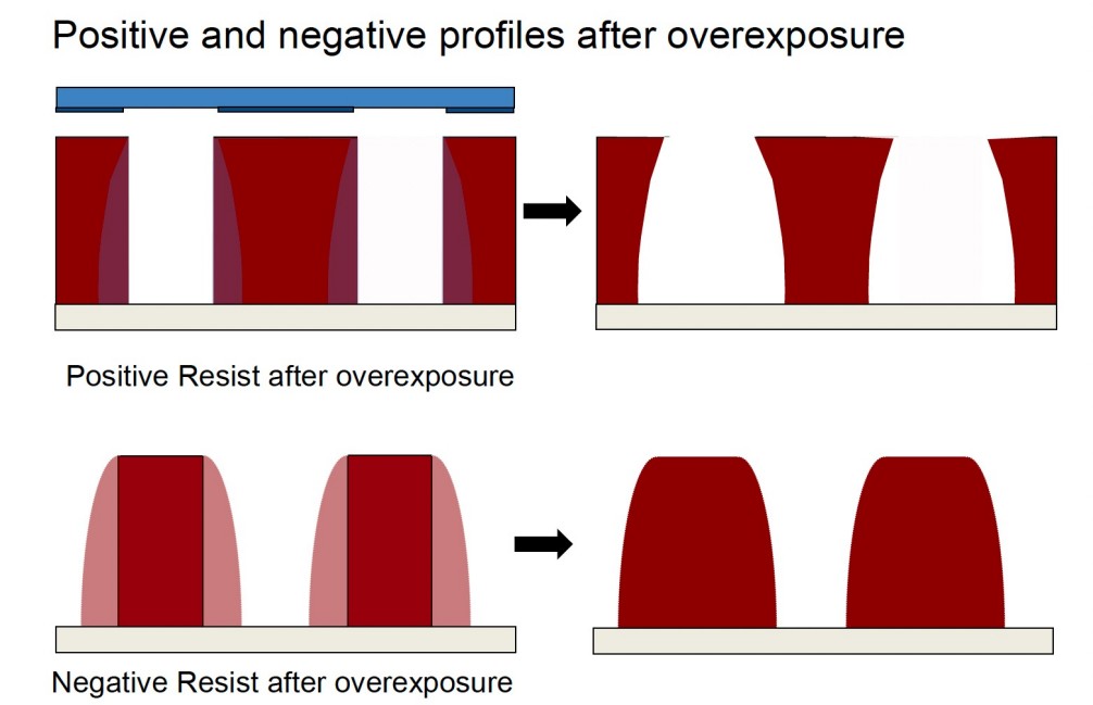 -> Over exposure : 패턴이 타고, 현상이 넓어진다