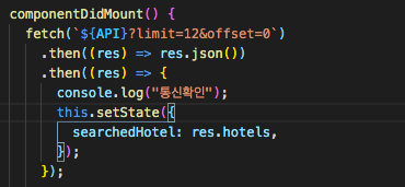 이번 프로젝트에서 pagination에 사용한 코드이다. 나는 한 페이지에 12개의 상품정보를 보여주기로 정했기 때문에 Limit은 12로 설정했으며, componentDidMount를 통해 제일 처음 보여줄 데이터의 값이므로 Offset은 제일 처음인 0으로 설정했다.