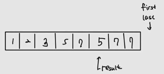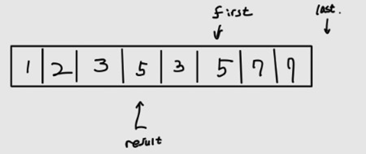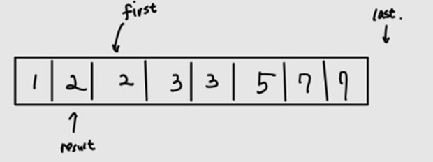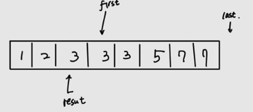 마지막으로 first == last가 되었습니다. while문의 조건에 위배되므로 while문이 종료되고 ++result를 리턴합니다. 그림에서 보이는 나머지 5,7,7은 의미 없는 값입니다.