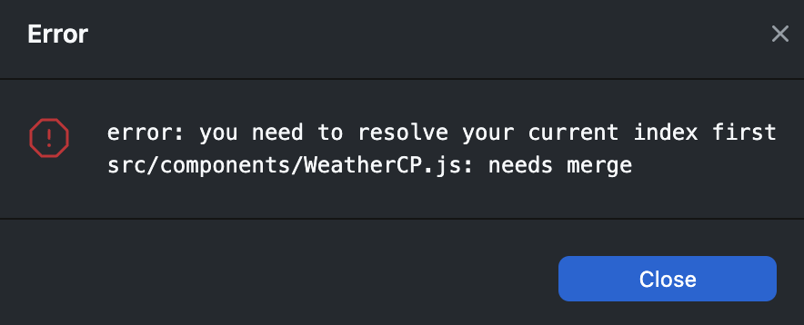 브랜치를 변경하려고하니 위와 같은 에러 발생
