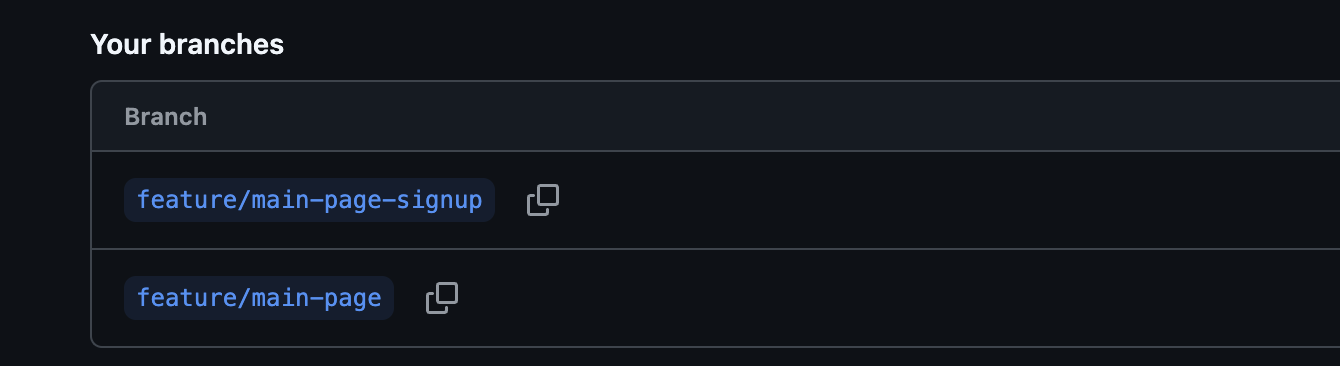 현재 있는 브랜치에서 다음과 같이 작성하면 로컬에서 새로운 브랜치 생성 완료