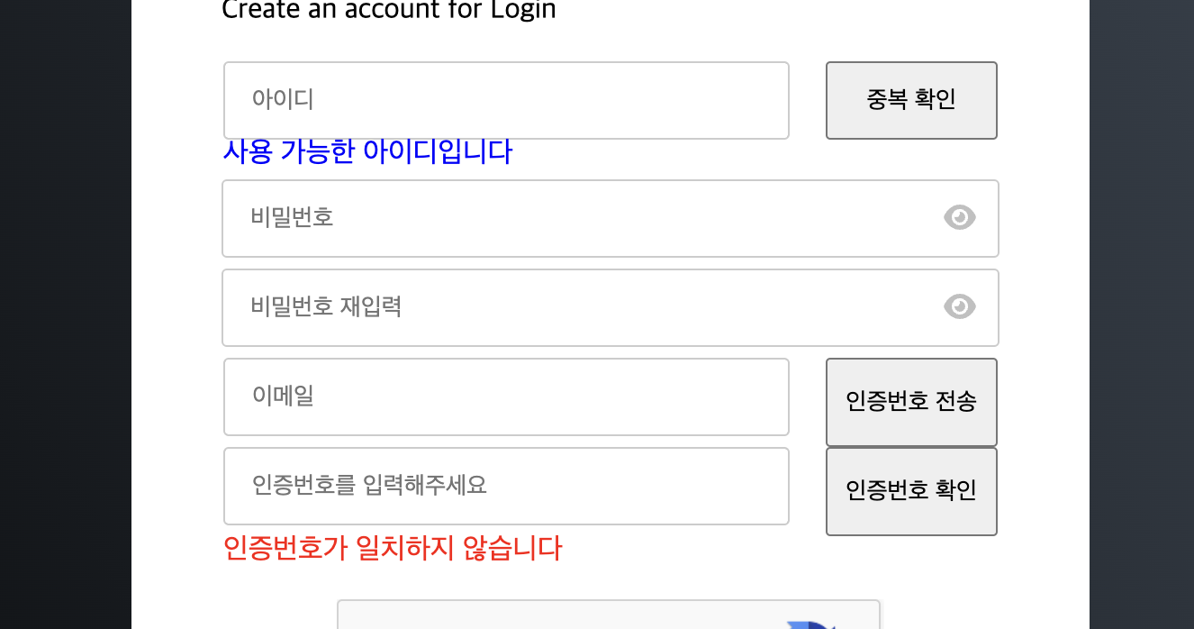 (아이디 중복확인 / 이메일 인증번호 확인)