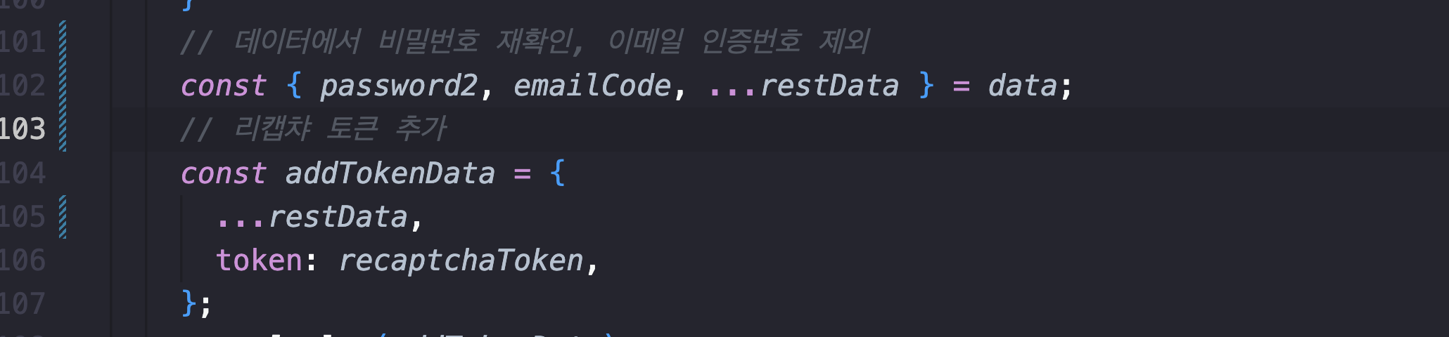 이때 전달되는 데이터에서 비밀번호 재확인과 이메일 인증번호는 필요없어서
