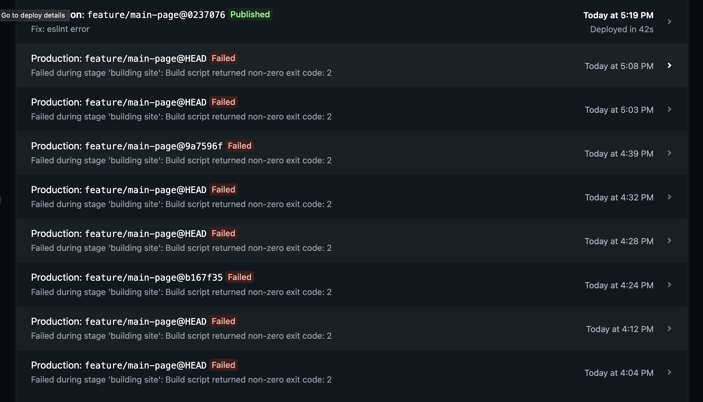 failed during stage 'building site': build script returned non-zero exit code: 2 eslint