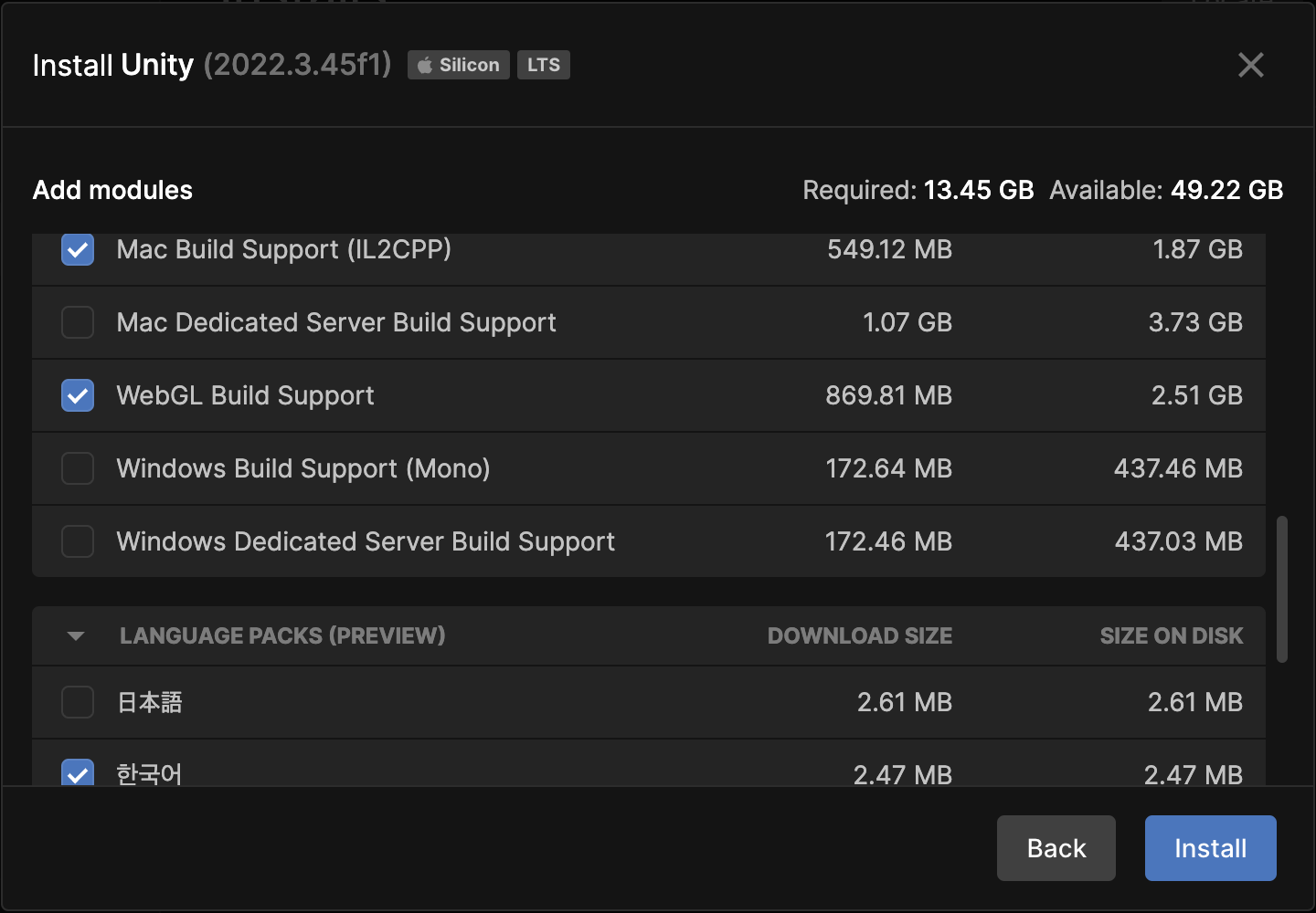 - 공식 홈페이지에서 Mac용 다운로드를 클릭하여 Unity hub 다운로드