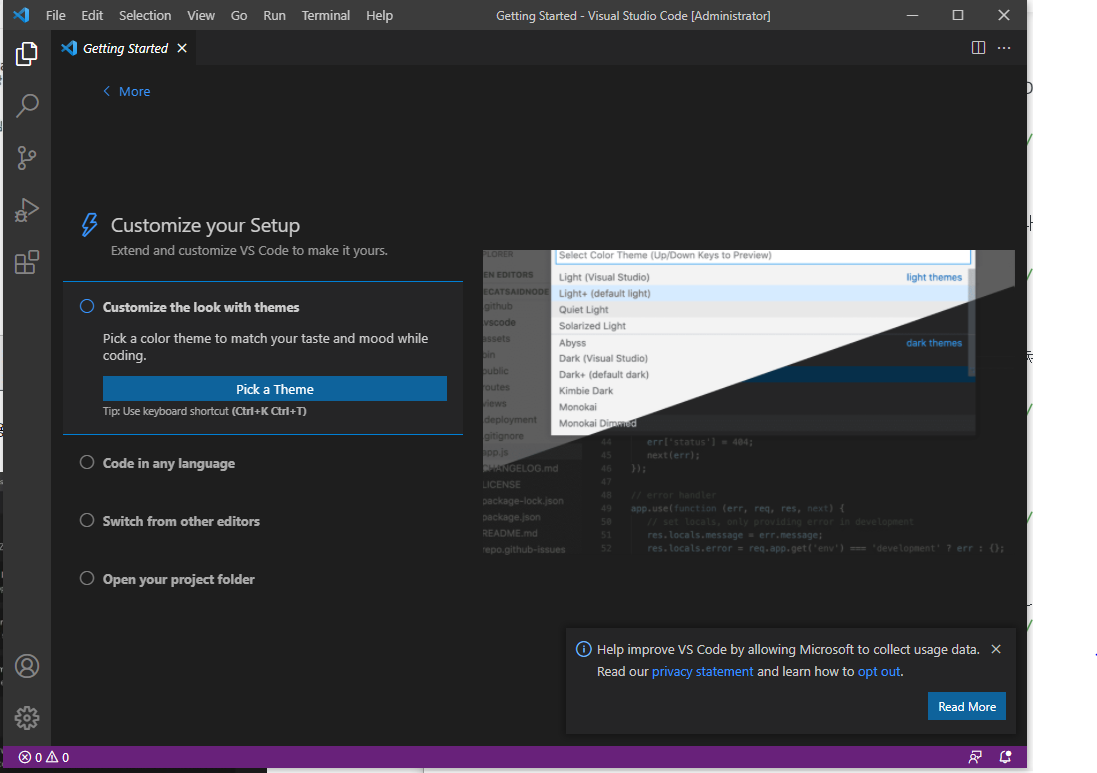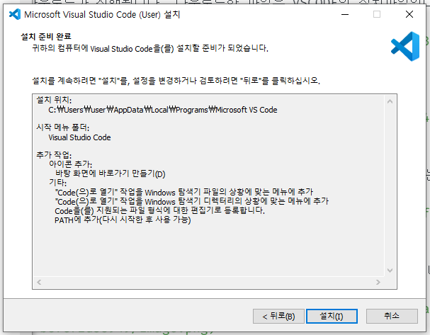 설치가 완료되었습니다. 이제 VSCODE를 사용할 수 있게 되었습니다.