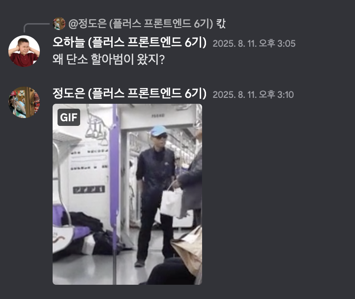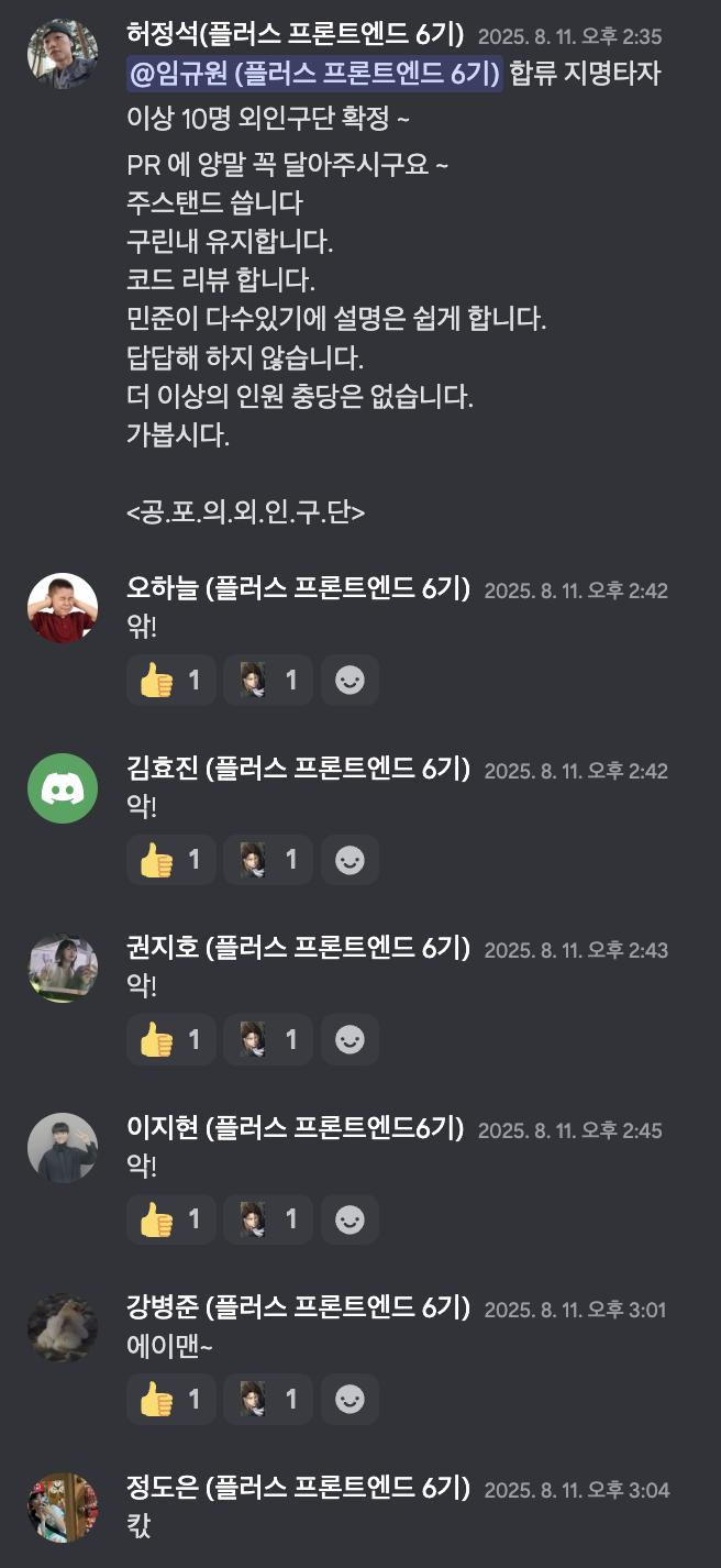 4주차부터인가? PR 제목 도용 방지를 위해 여렌 예거가 제목에 🦍 고릴라를 넣었는데, 이를 시발점으로 한 명씩 제.꾸(제목 꾸미기)를 하기 시작했다. PR을 올리려고 하는데, 타 팀의 누구누구 님이 제목에 🧦 달길래 나도 달았더니 사실 구린내 클럽이라며 스카우트를 당했다.
