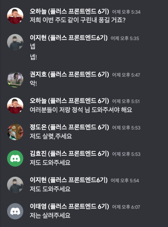 프록시 설정 때문에 배포가 잘 안 되었는데, 아예 몰랐다면 제출도 못 했을 거다. 미리 알려 준 준형 님과 창준 님, 용훈(항해 손석구) 님에게 감사감사를 전합니다아.