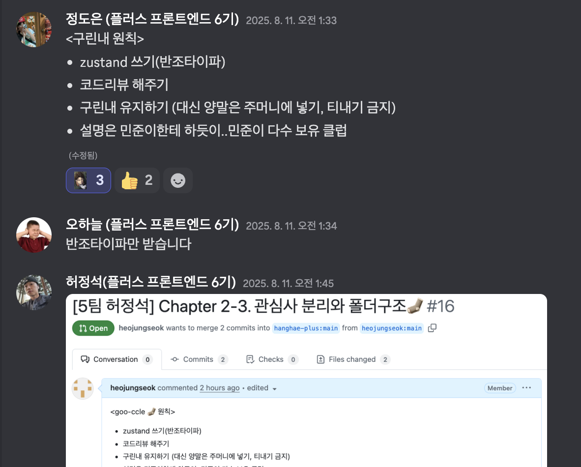 이번 주차는 FSD 아키텍처 적용 및 전역 상태 관리 라이브러리와 Tanstack Query를 사용하고, 최종 과제에서는 나만의 폴더 구조를 만들어 가는 것이다. 사실 다 하지는 못했다. 시간이 촉박하기도 했고, 어려웠고(제일 중요), 그동안 미룬 숙면들이 한꺼번에 들이닥쳤다. 진짜 졸면서 배포하고, 확인하고, 실패하면 또 배포하고 이런 식.