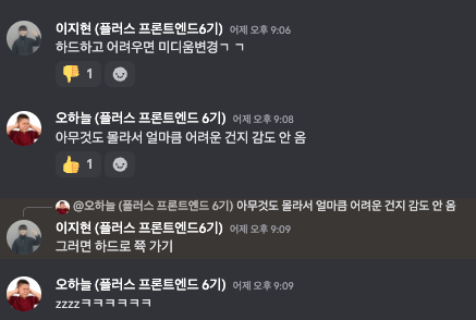 다른 분들 보니까 새벽까지 과제하고, 제출하고 PR 작성하더라. 지호 님은 졸면서 했대... (그런데 라이트 테마 뭐예요?)