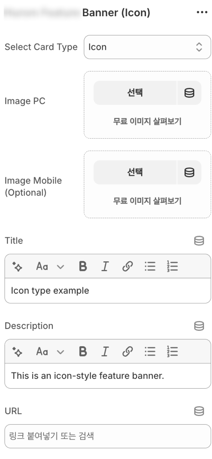 "label": "Select Banner Type", // 웹 에디터에서 보여질 Label