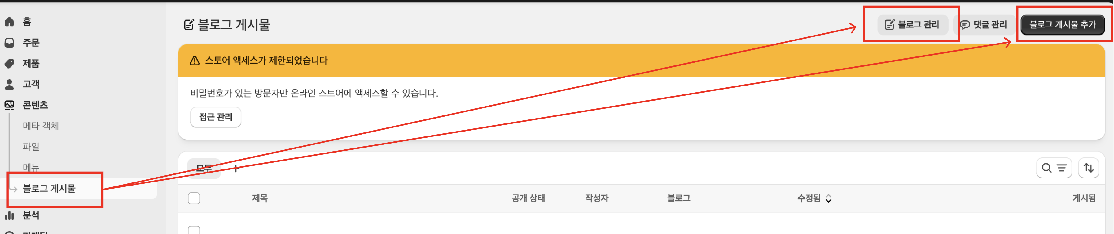 블로그는 페이지 생성과는 다르게 콘텐츠 탭에서 게시판과 게시글 두 가지 모두 생성할 수 있다. 생성 방법은 페이지 만들기와 같다.