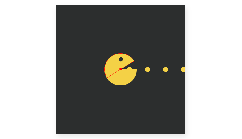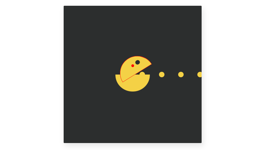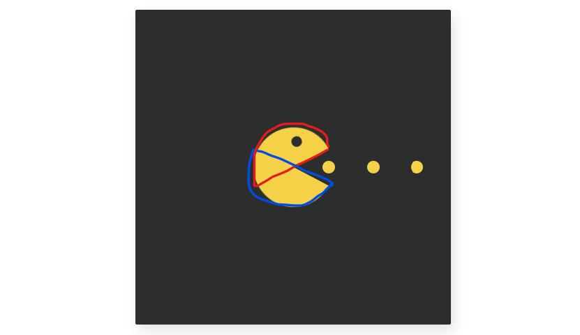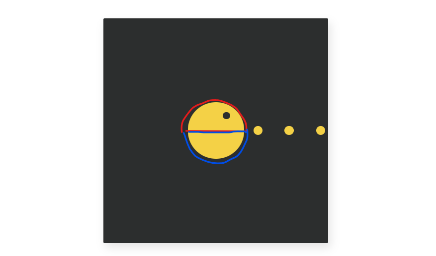 일단! 이렇게 팩맨의 입모양을 만들기 위해, 머리 부분 반원 + 턱 부분 반원 을 만들어야 한다!