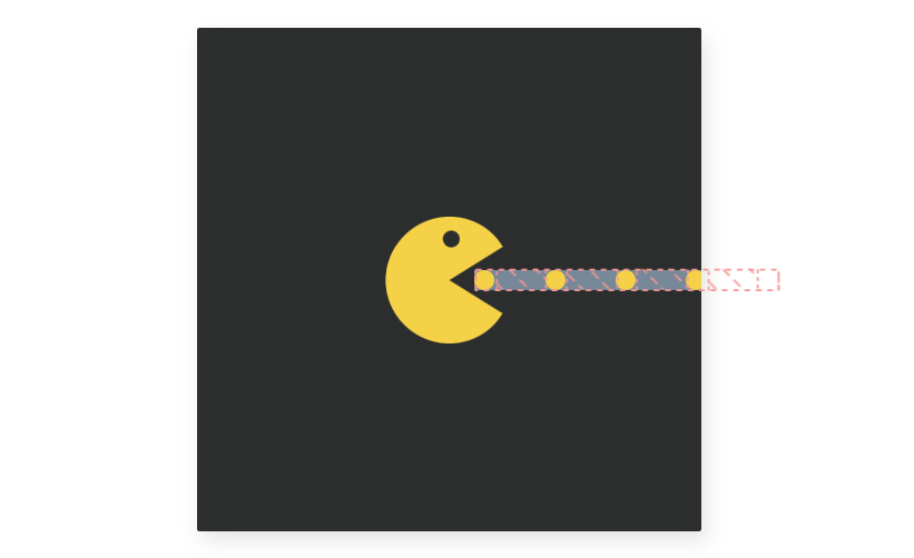 그래서 프레임 안에 팩맨이 들어갈 영역을 만든 다음 가운데에 배치하고, 그 안에 반원을 위, 아래로 배치했다.