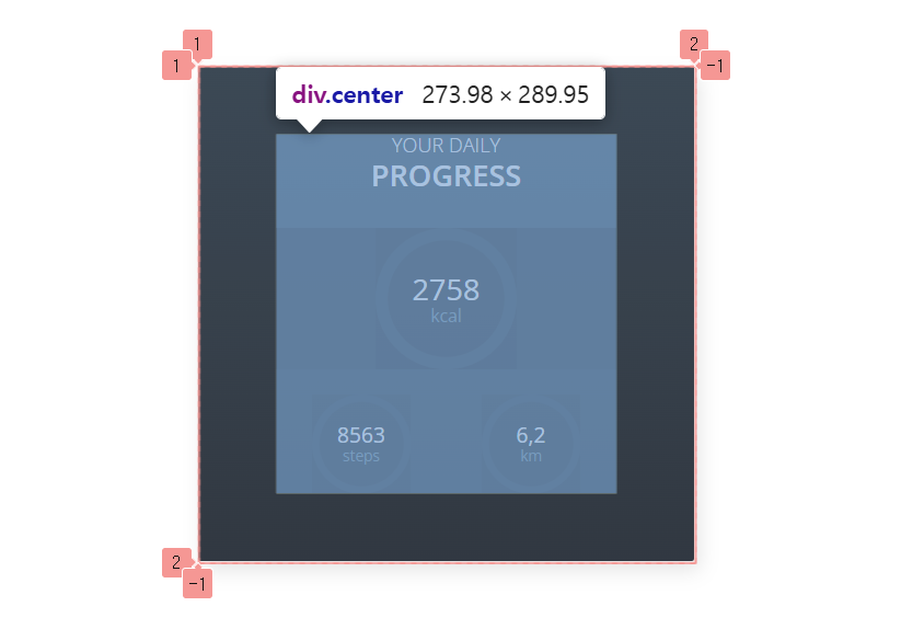 일단 div.center 를 정중앙배치 한 다음 (grid 중앙정렬)
