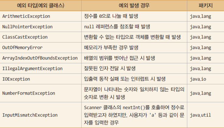 예외? 실행 중 오동작이나 결과에 악영향을 미치는 예상치 못한 상황 발생