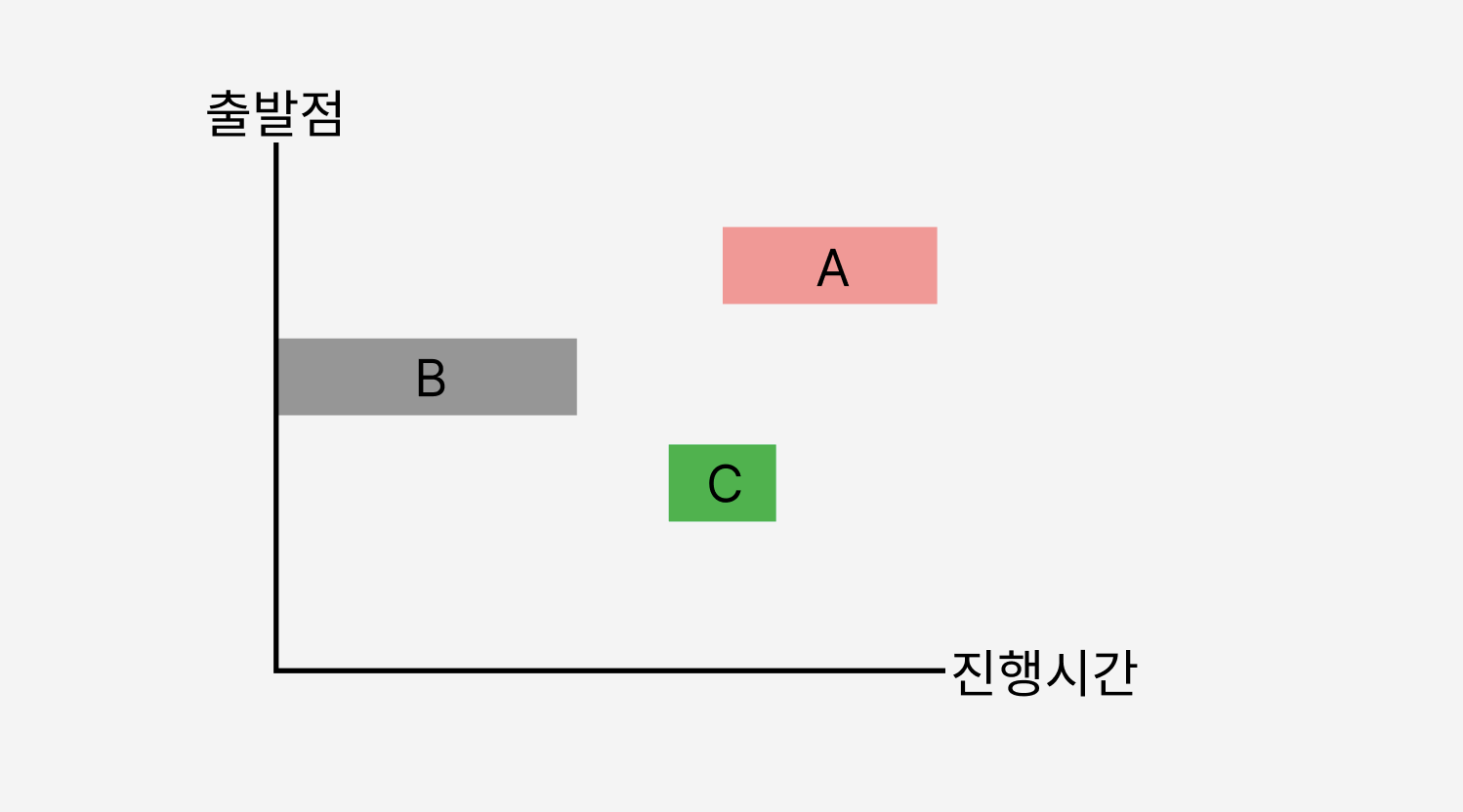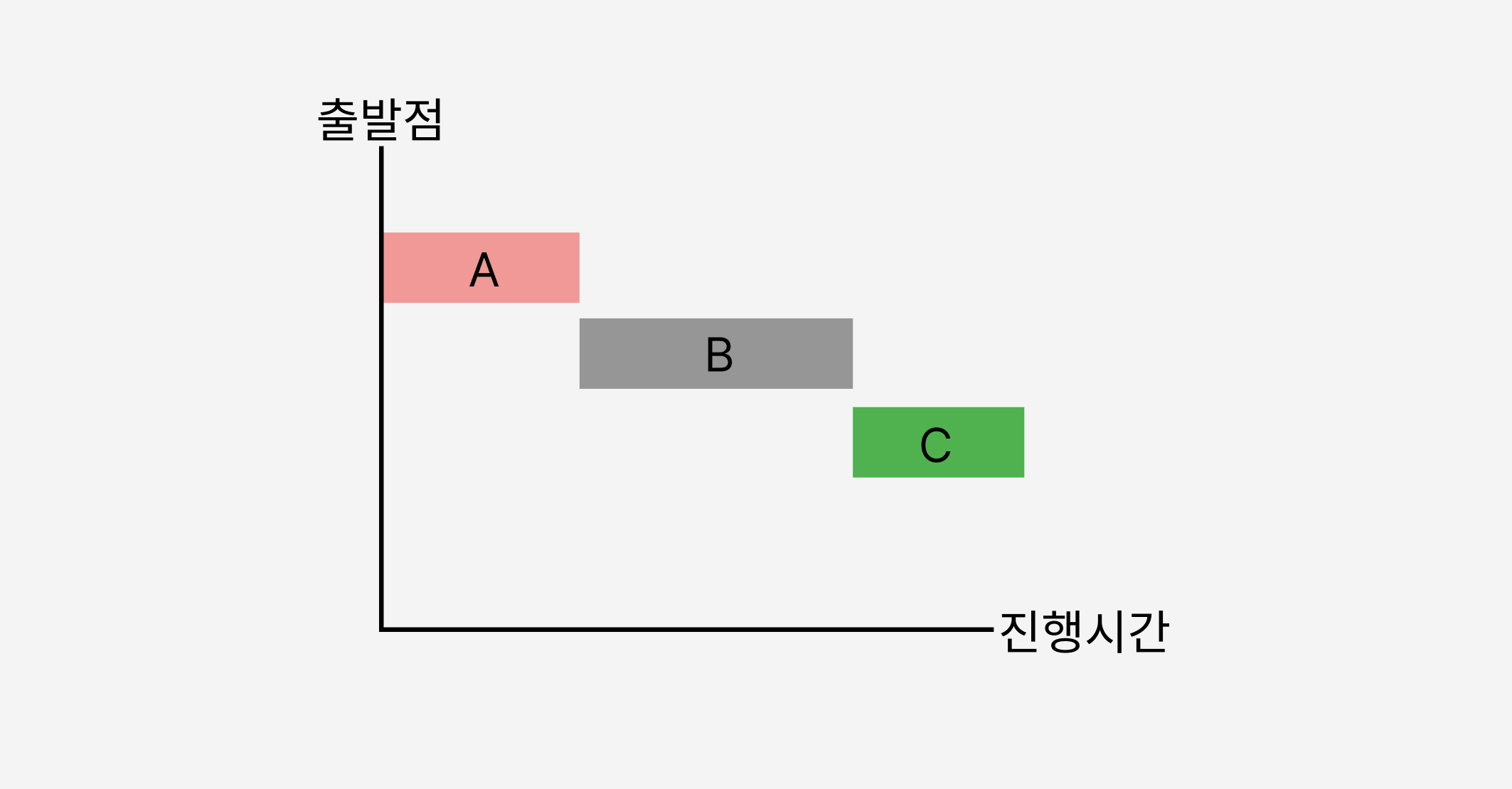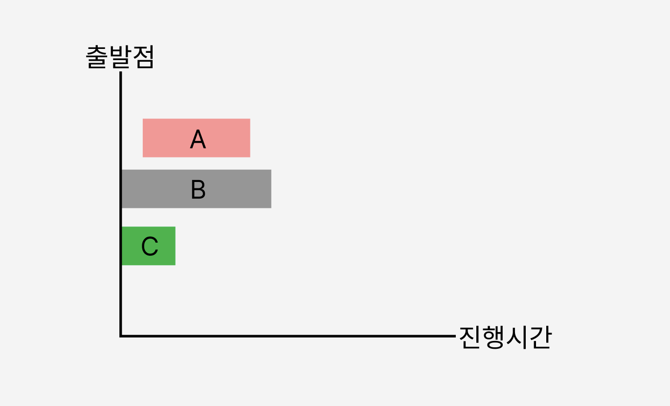 위와같이 A,B,C 업무가 서로간의 시간관계없이 진행되는걸 의미한다.