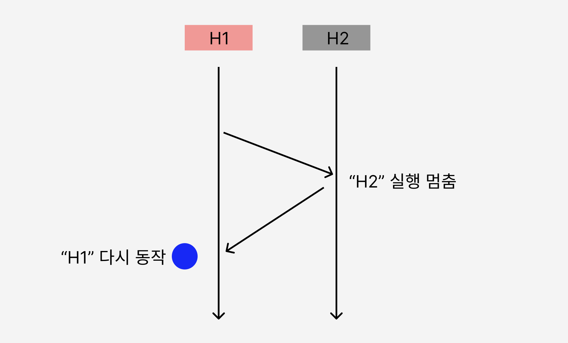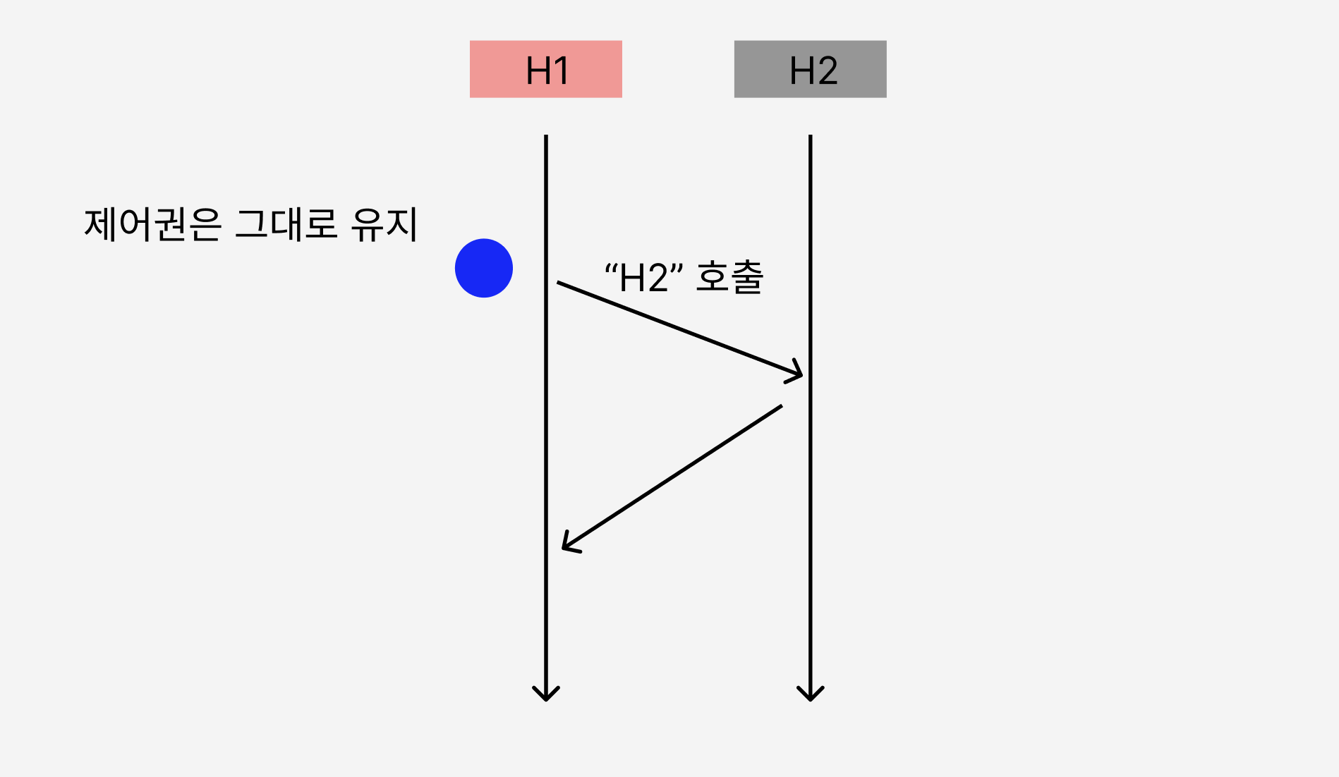 "H1"에서 "H2"를 호출하여도 제어권은 그대로 "H1"에게 있고 "H2"를 동작시키는 것이다.