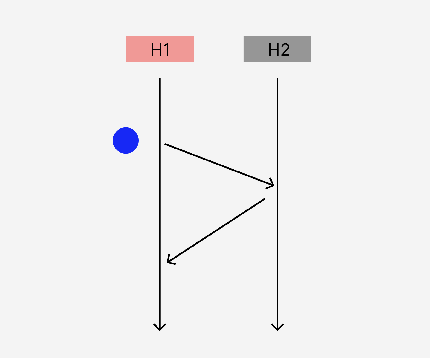 위와같이 "H1"에서의 "A"작업에서 먼저 "제어권"을 가지고 있다가 "A"가 끝나면 "H2"의 "B"로 "제어권"을 넘겨준다. "B"작업이 완료된다면 "C"작업으로 "제어권"을 넘겨준다.