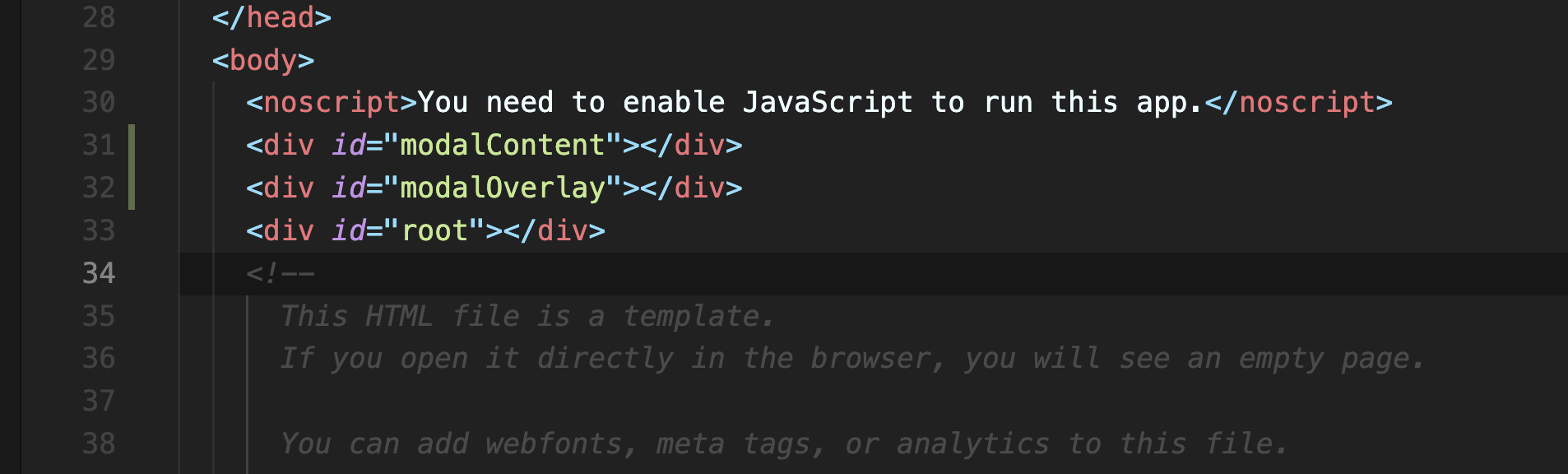 위와같이 "public"폴더에 있는 "index.html"파일에 포털을 이용한 컴포넌트의 위치를 "id"값으로 명시해준다.