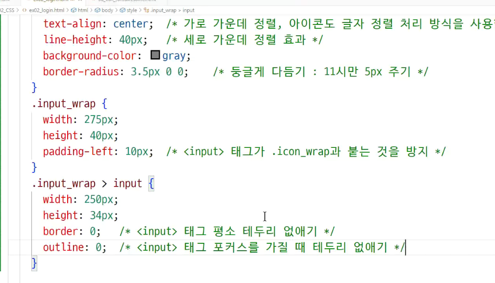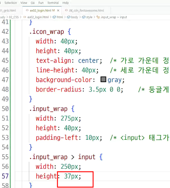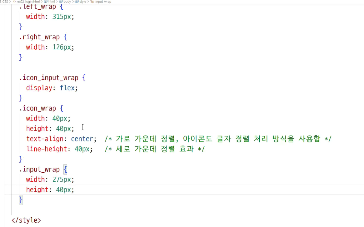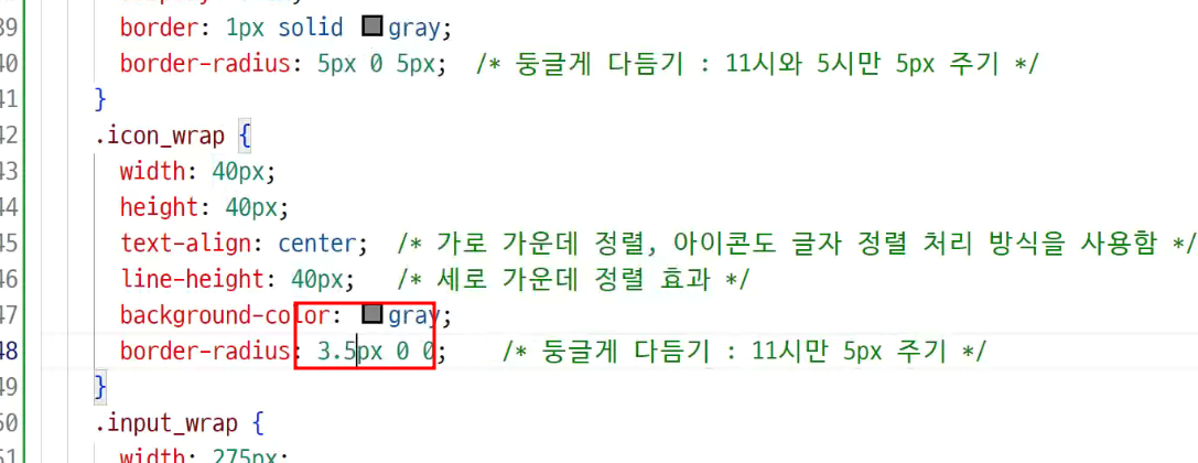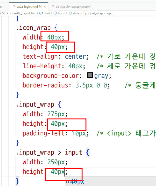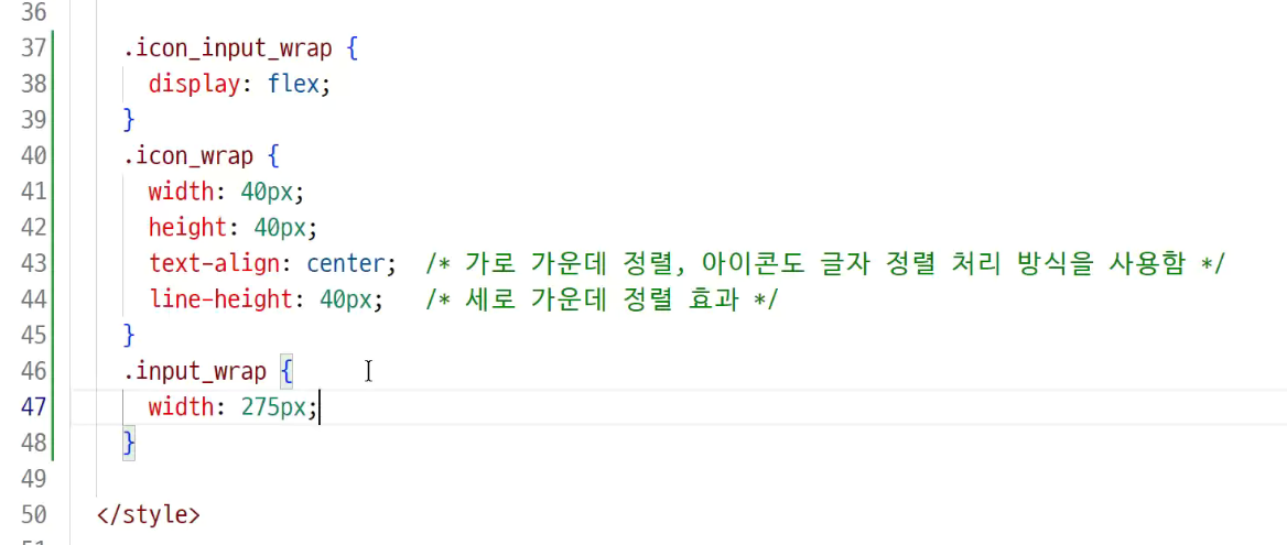 -> 높이 40px = line-height 40px 로 맞춰줘야 '글자 세로 가운데 정렬' 효과를 줌