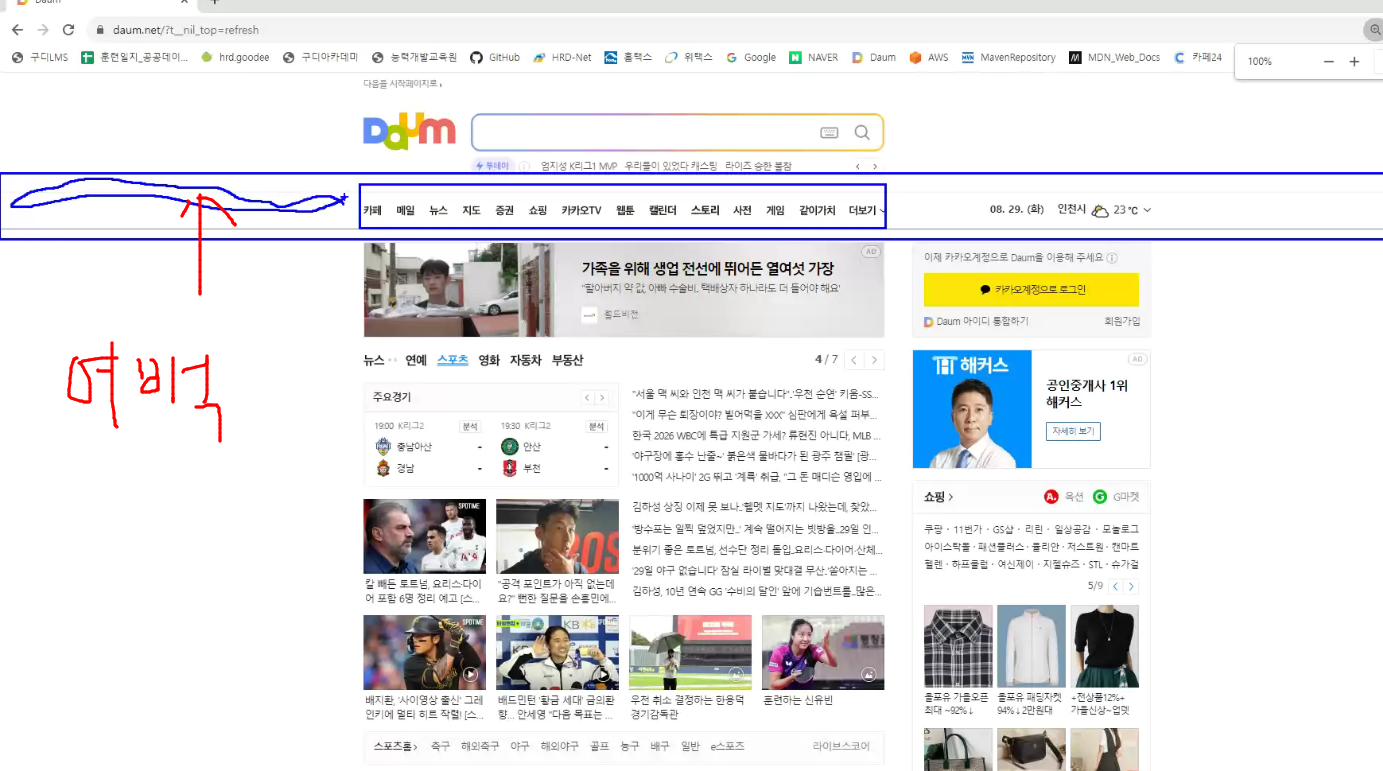 -> a 태그 색깔 파란색, 보라색(밑줄도 가있음)