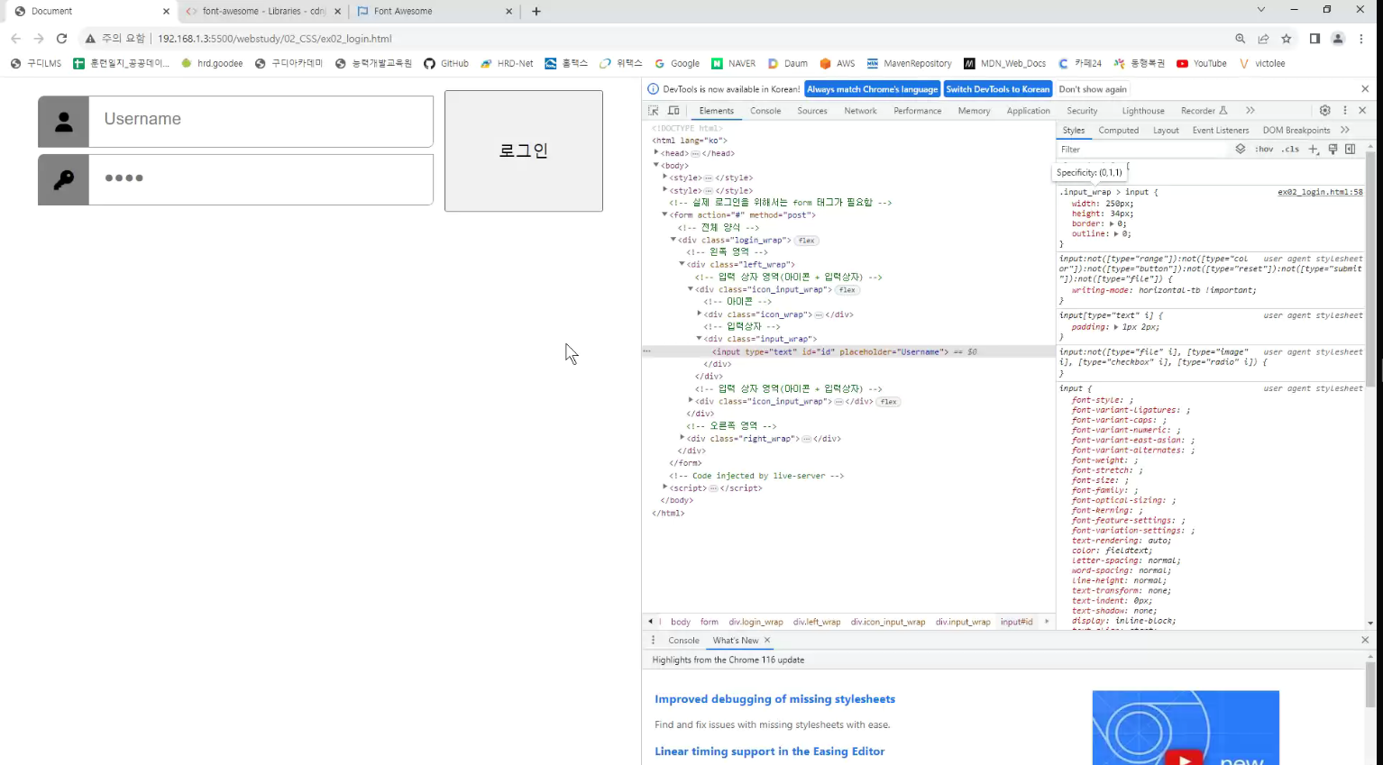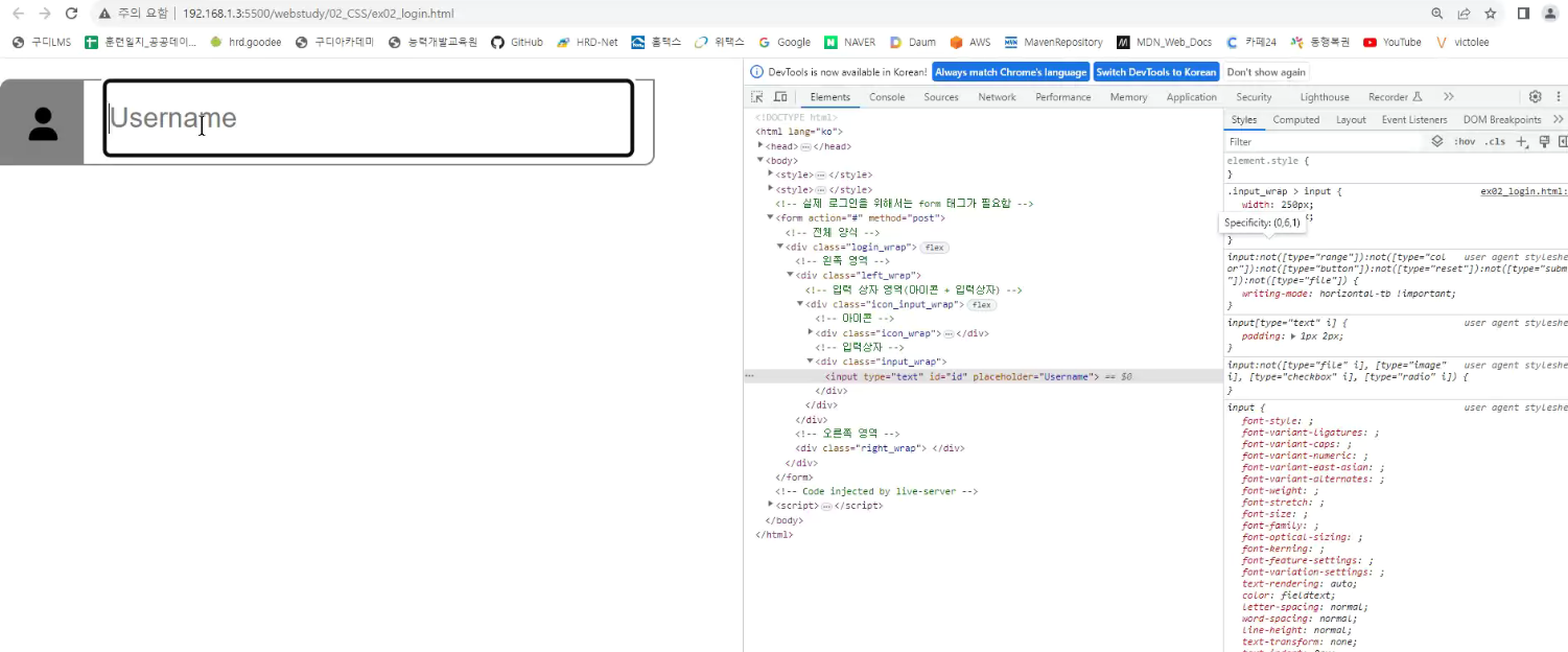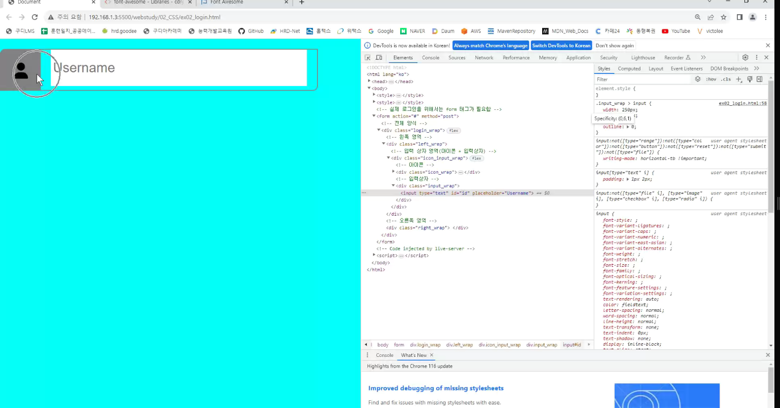 -> icon과 input이 같은줄로 옴