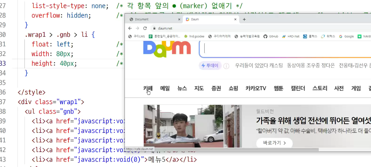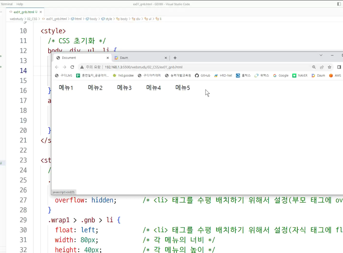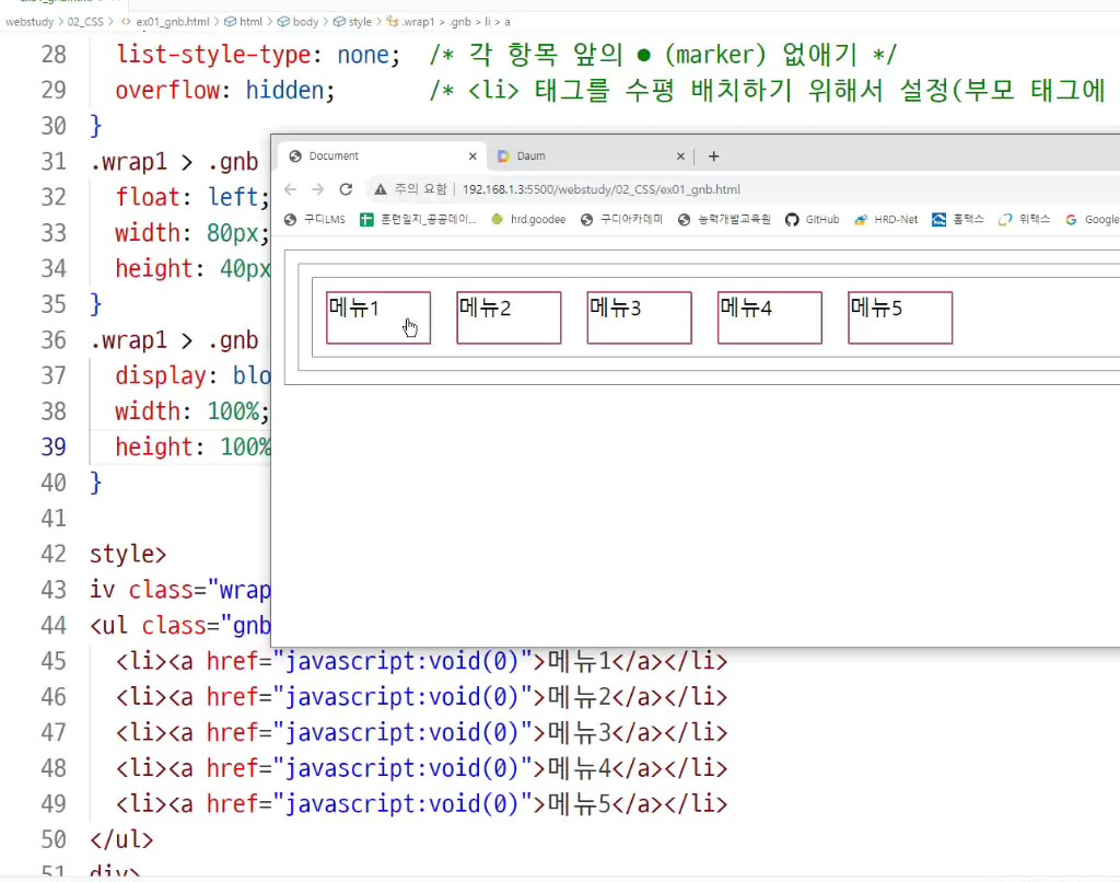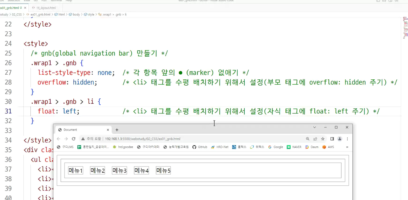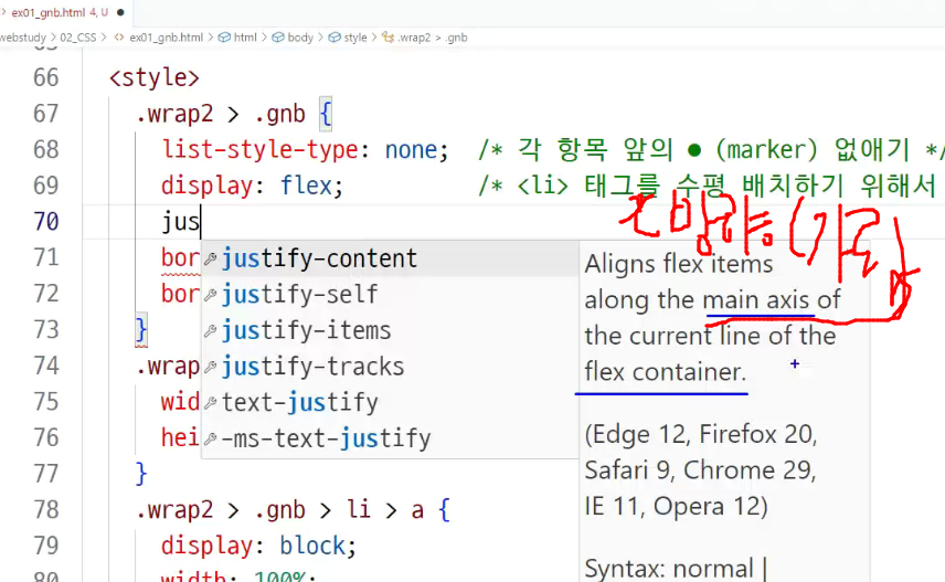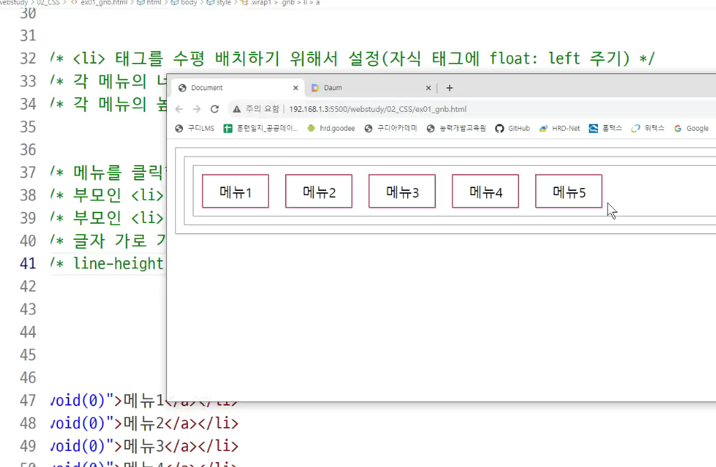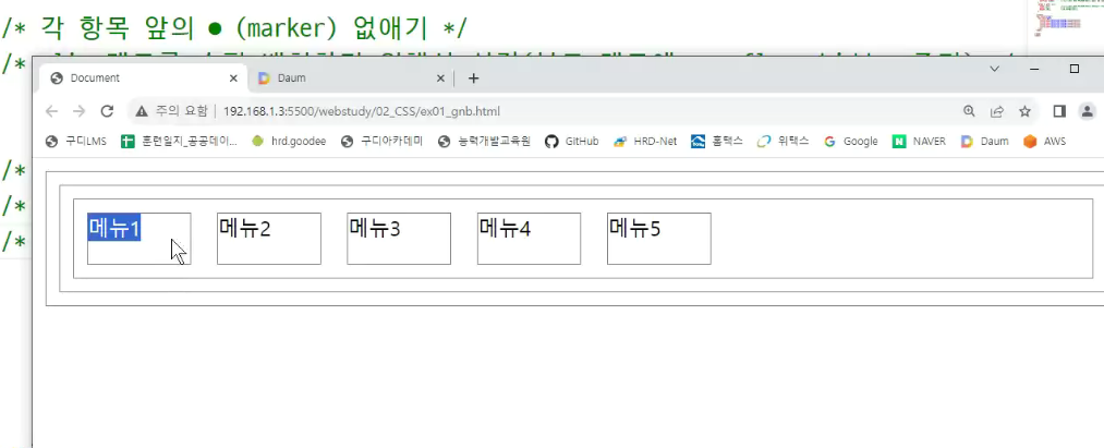 -> 부모의 ul태그의 display : flex 보면서