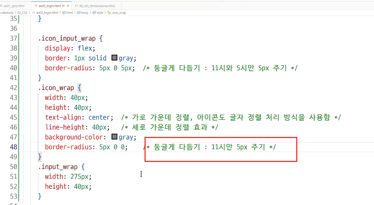 -> 입력상자 테두리를 둥글게 다듬을 수 없음