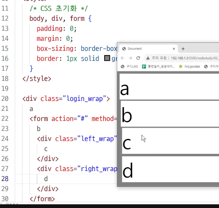 -> form 태그: block(form 태그 요소 : 인라인)