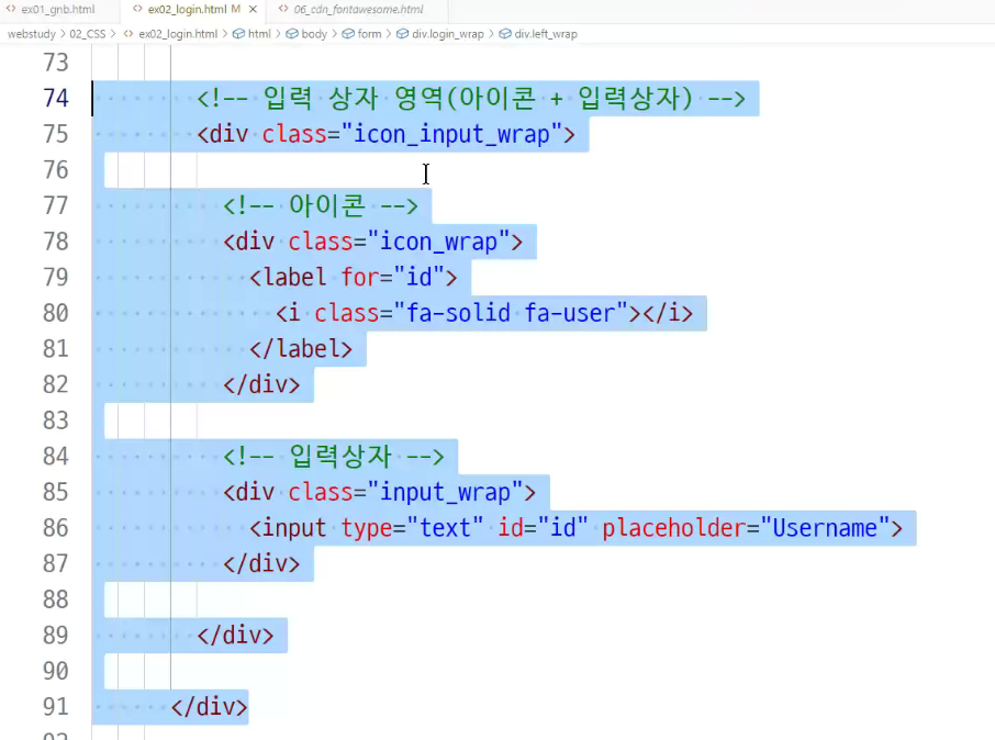 -> 아이콘과 입력상자 연결을 위해서 아이콘을 label 태그로 묶어주기