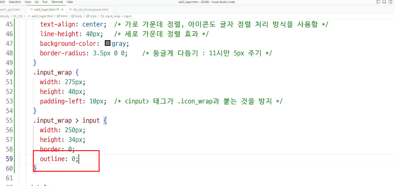 -> 입력상자 선택 : focus해도 테두리가 보이지 않음