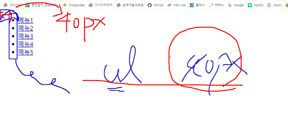 -> ul의 내부 여백