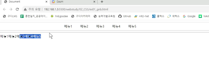 -> 마우스를 가져다 대면 글자 색깔이 변함
