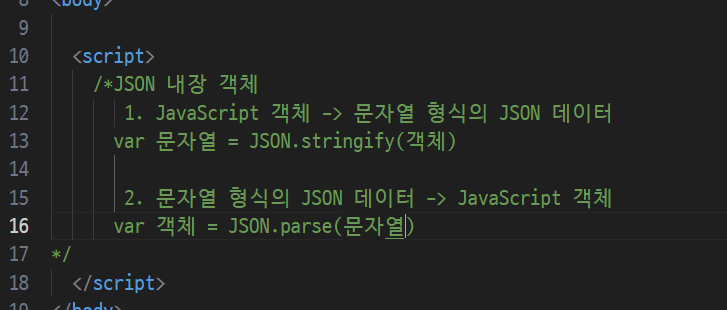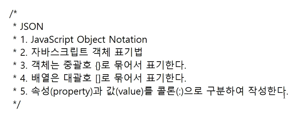 -> 자바스크립트 객체(json : javascript object : 표준화된 데이터 중 하나)