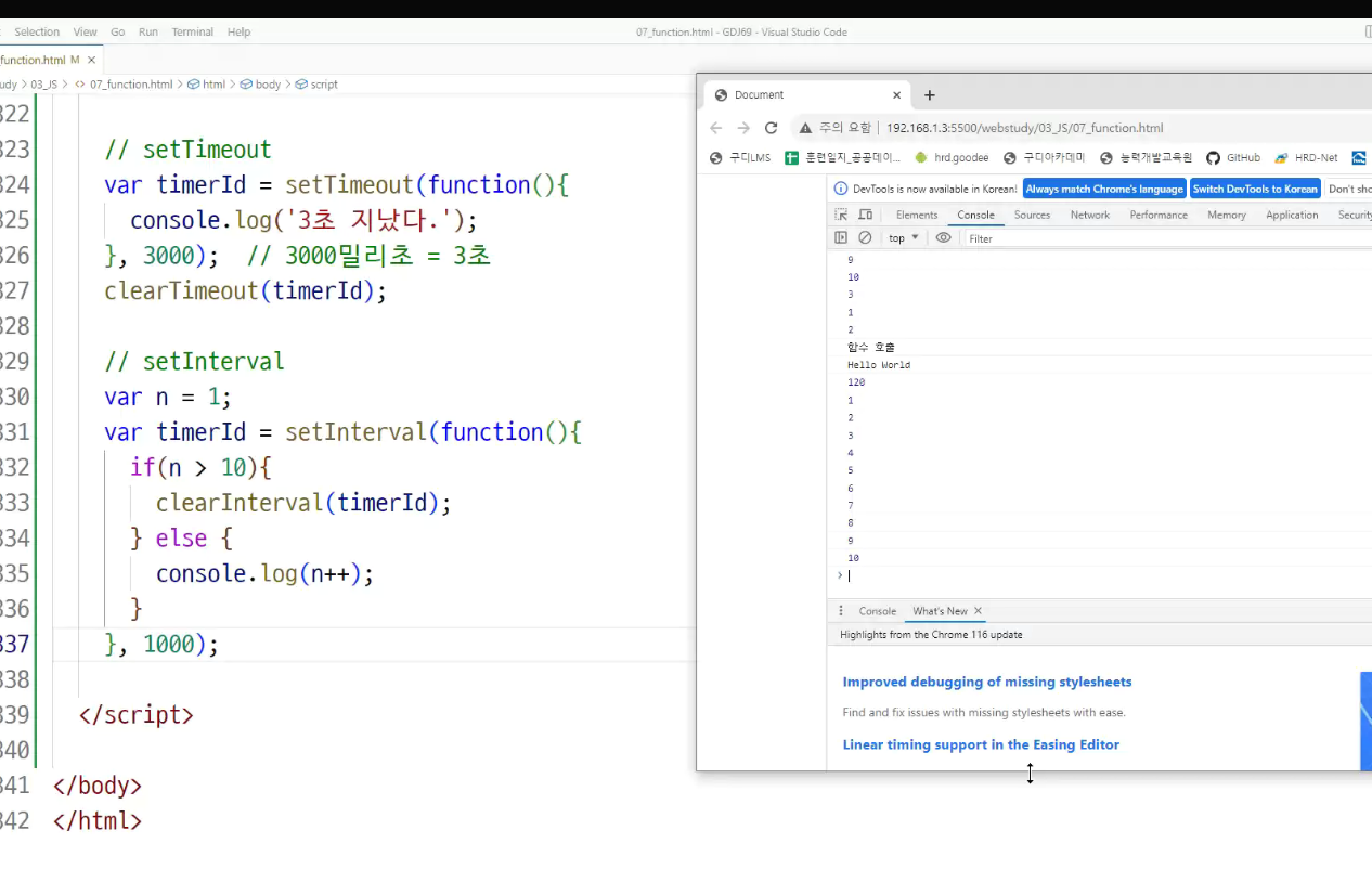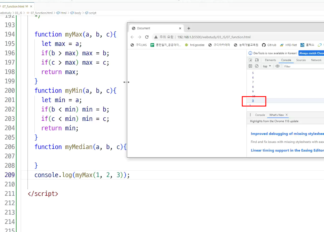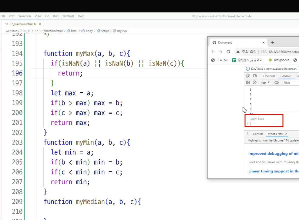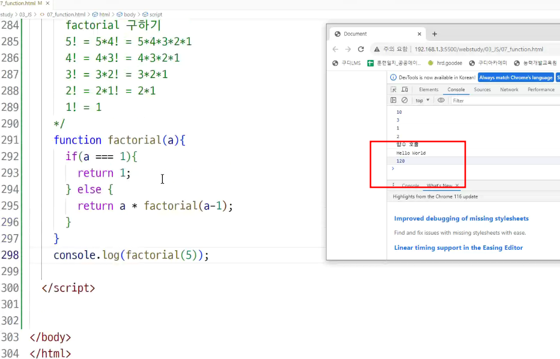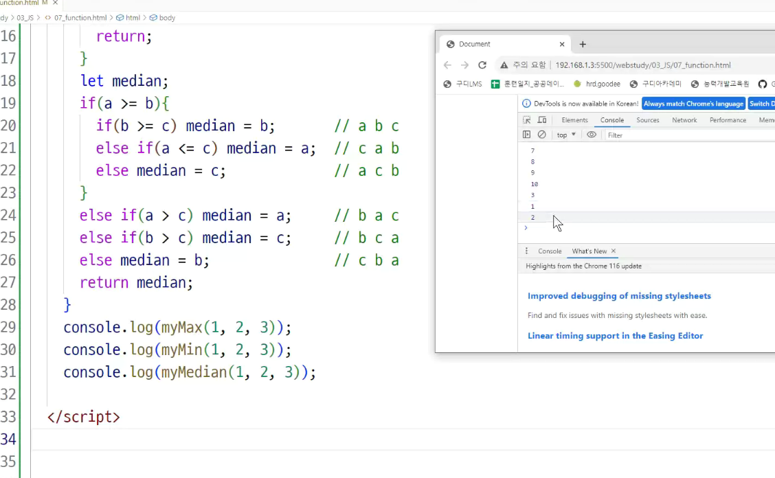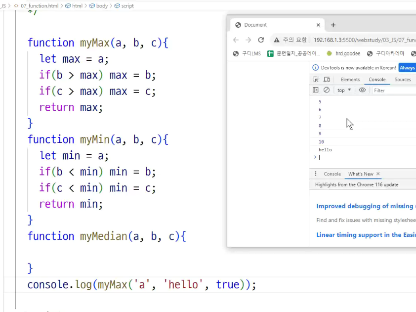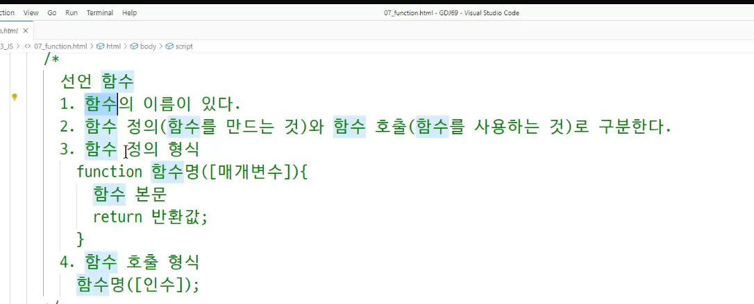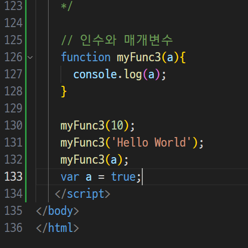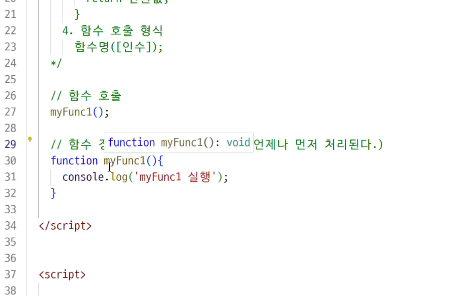 -> 호이스팅 : 함수 정의와 변수 선언을 먼저 한다