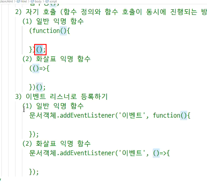 -> 만들자마자 호출부()를 덧붙이는 방식