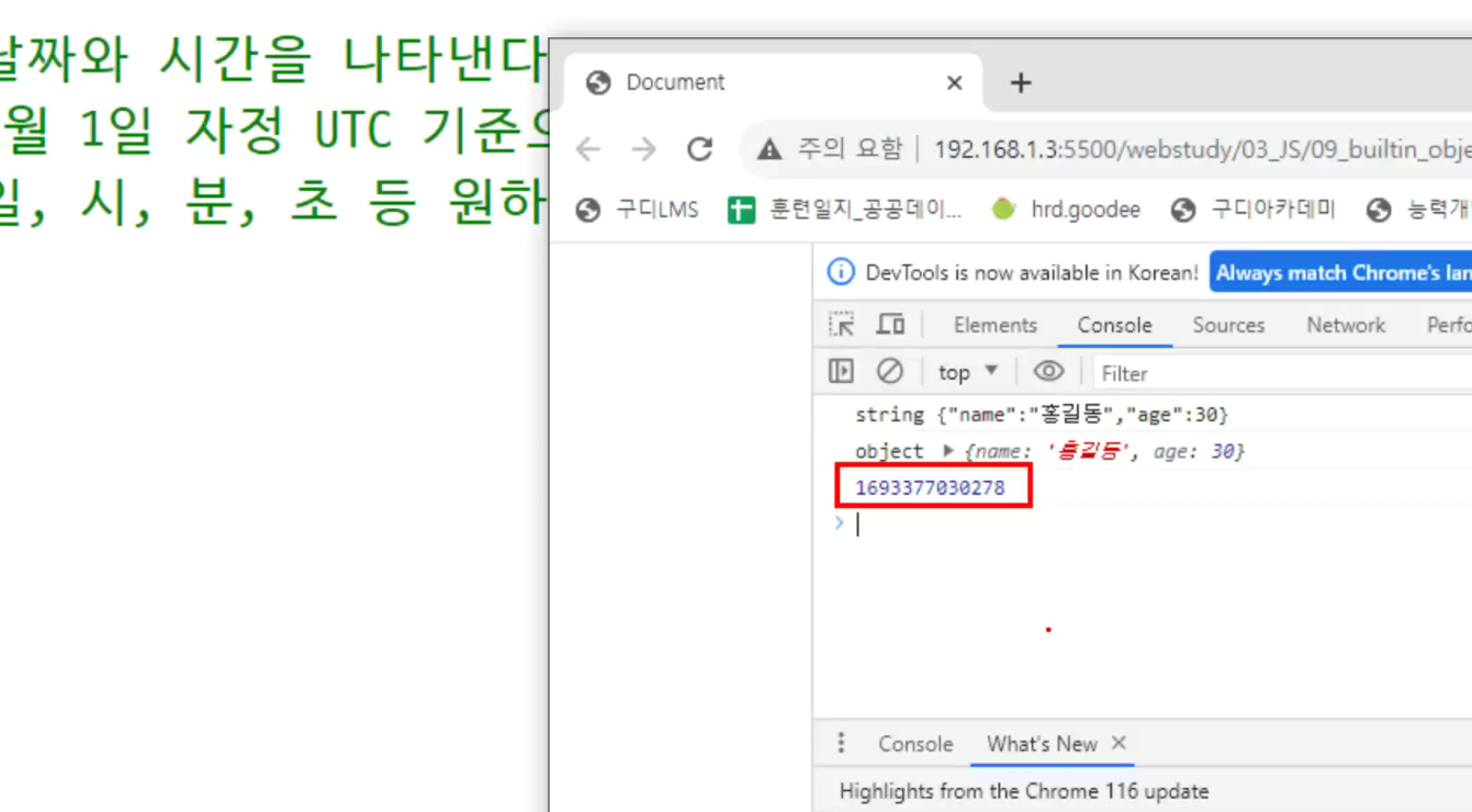 -> 지금 타임스탬프 값