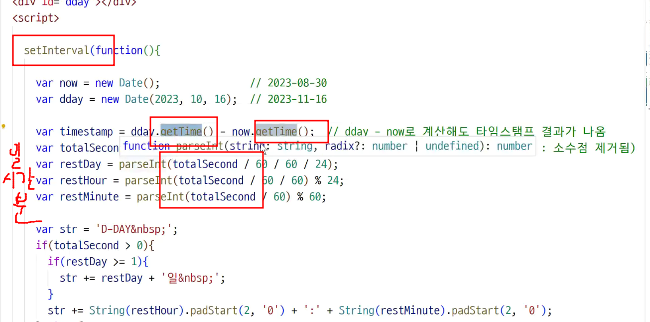 -> 차이를 구하면 d-day도 가능