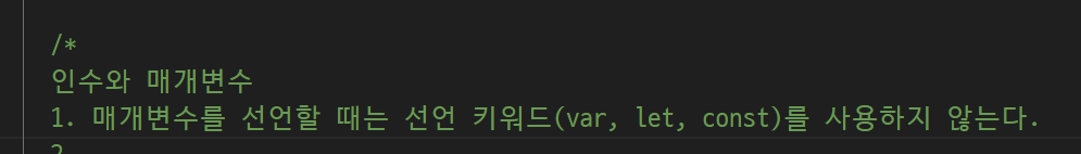 -> 매개변수 선언시 선언키워드 들어오지 x