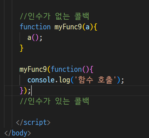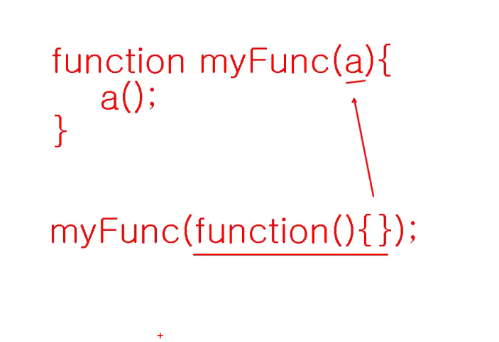 myFunc 호출할때 익명함수(function(){})를 하나 던지면 => 익명함수를 변수에 저장했음(할 수 있음)