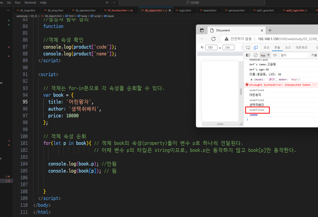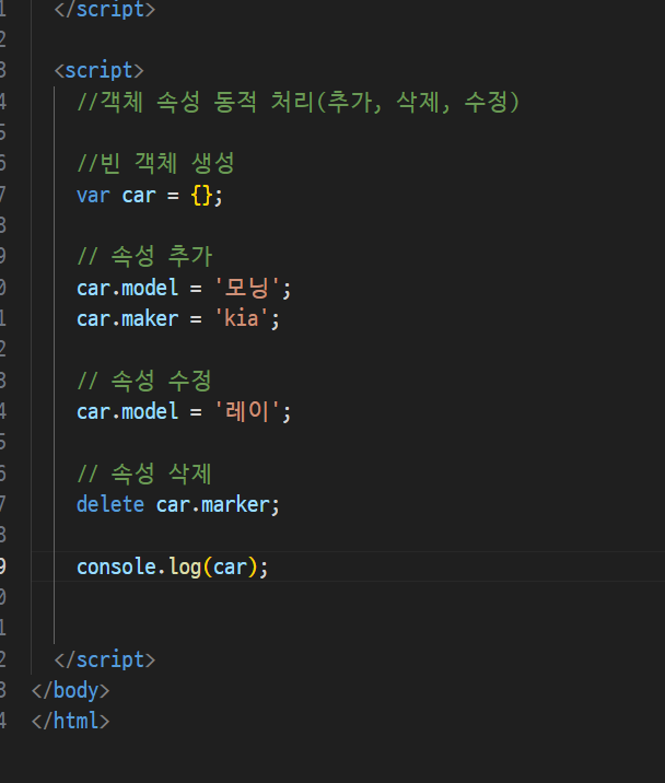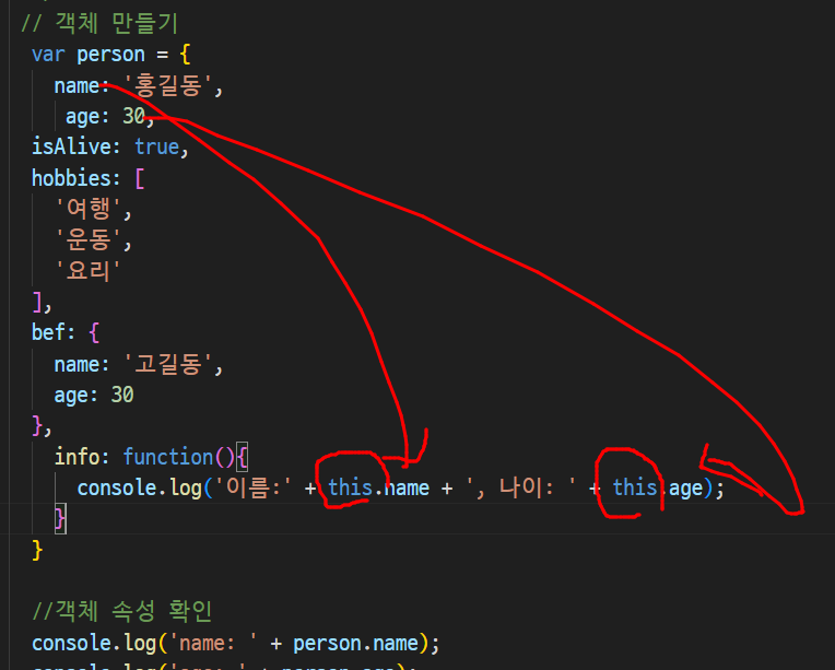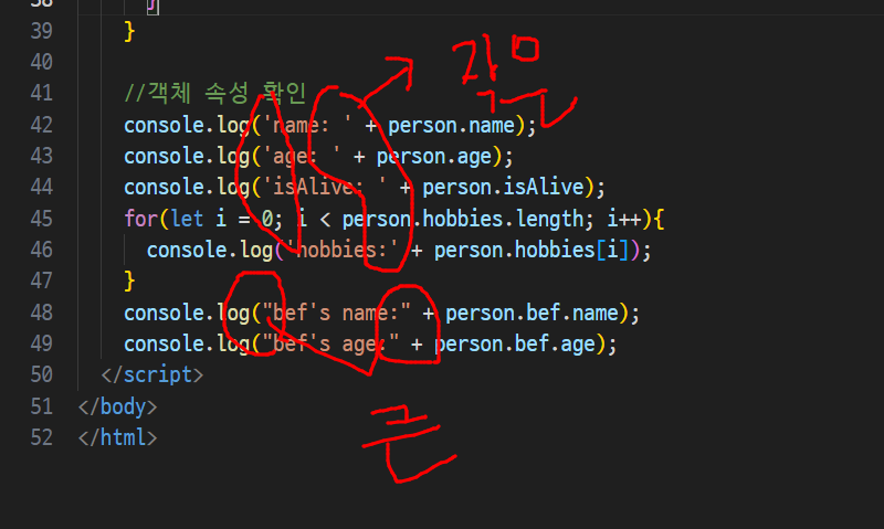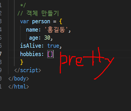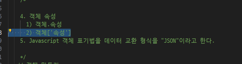 -> 속성이 문자열로 표기될때는 [대괄호]표기법 써야함(마침표 x)