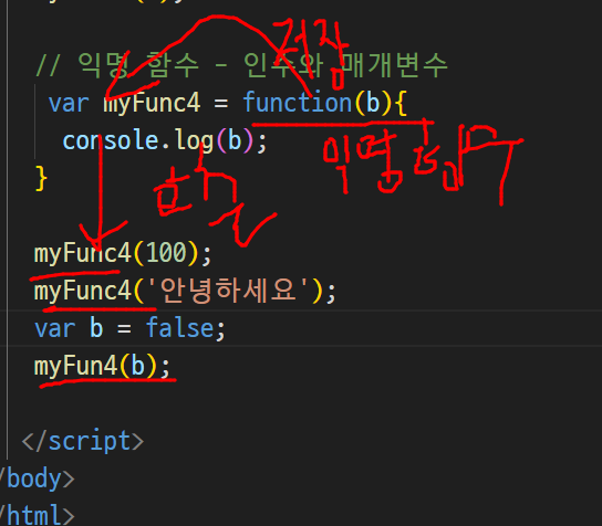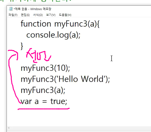-> function을 저장한 변수는 더이상 변수가 아니라 함수임