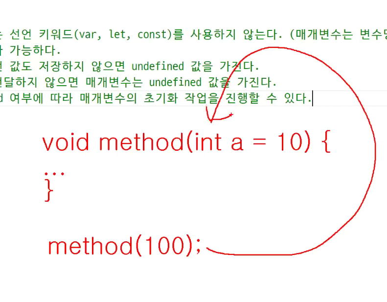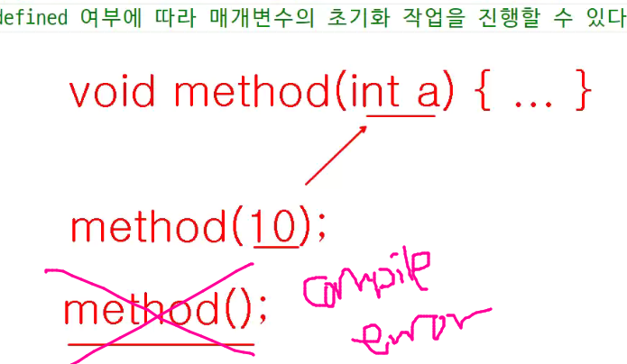 -> 매개변수가 선언되고 있음에도 불구하고 전달하지 않을수 있음(이경우임!!)