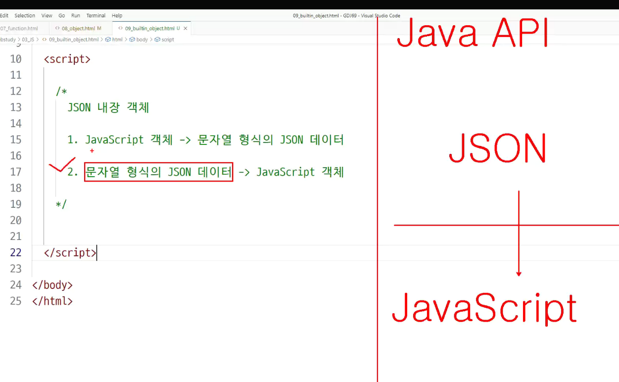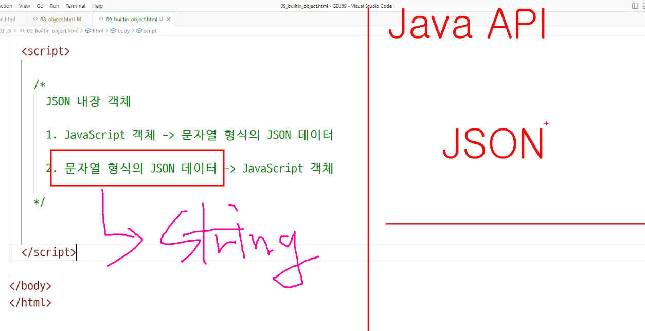 java에서 json.object를 가지고