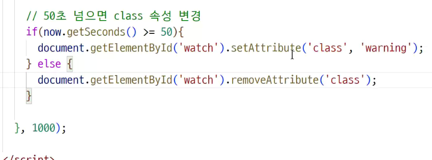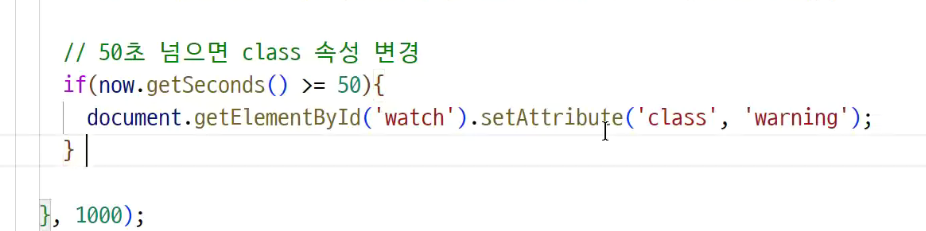 (javascript에서 if문 써서 50초 넘으면 watch에 warning을 주는것)