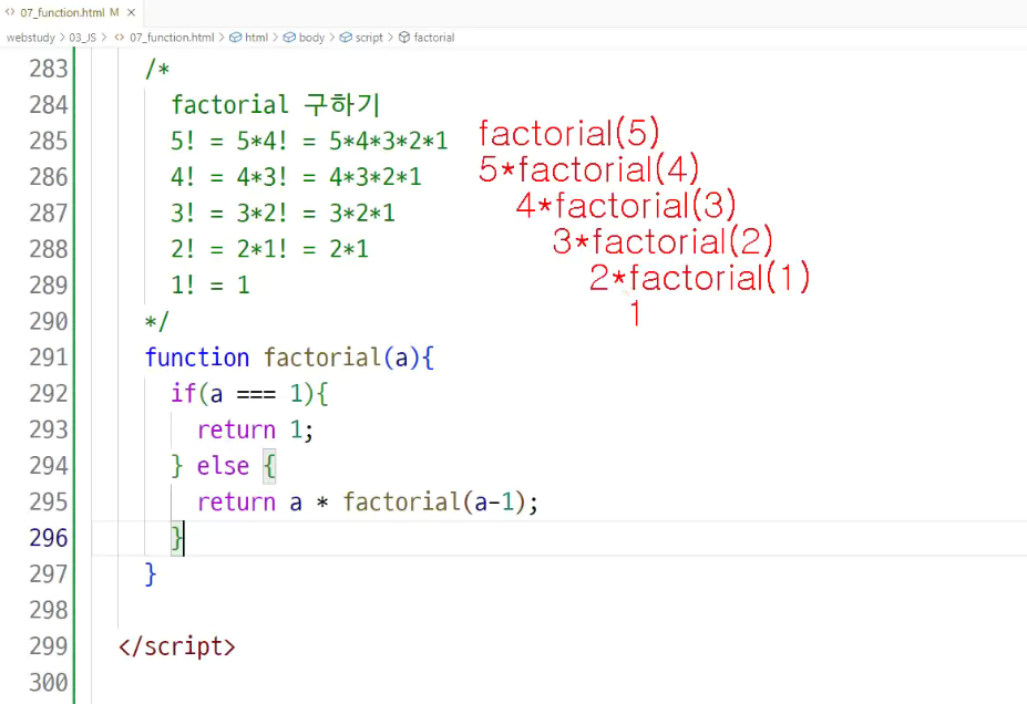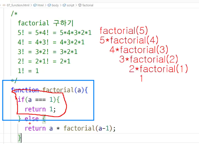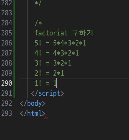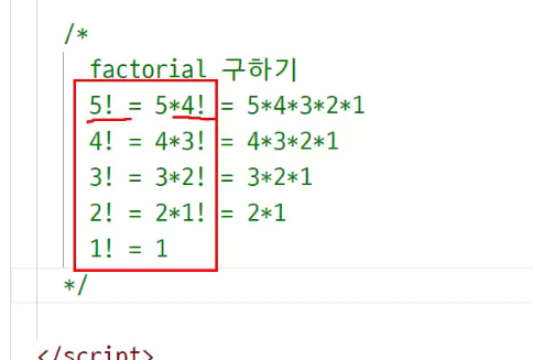 -> 팩토리얼 값 구할 때 : 팩토리얼 값보다 하나 작은 값을 구해서 씀