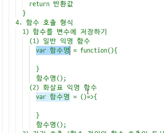 -> 변수를 선언하고 변수에 함수를 저장한다(변수= 함수)